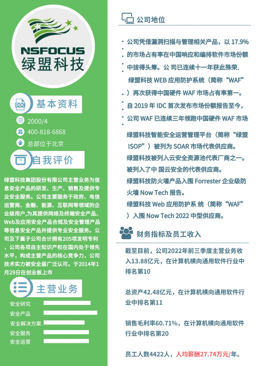 绿盟科技也面临着激烈的市场竞争、技术更新换代和客户需求变化等挑战,为了保持竞争优势,绿盟科技需要不断加强研发,推出更多创新产品与服务,满足客户的多样化需求,绿盟科技还需要加强与合作伙伴的合作,共同推动网络安全行业的发展。