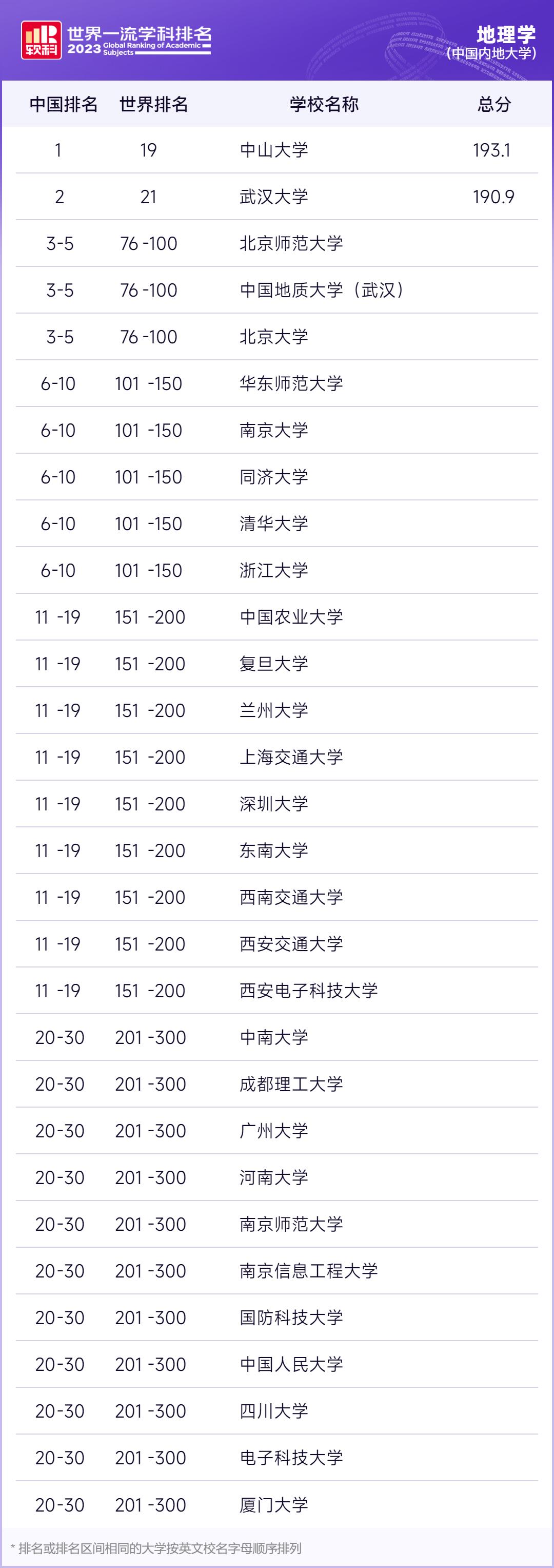 软科排行榜概览