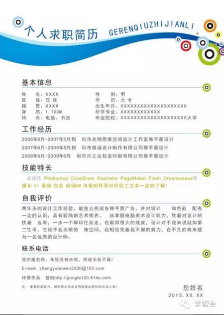 简历模板: